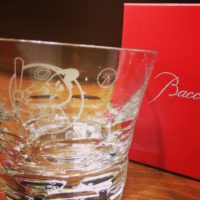カープ坊やとバカラのコラボグラス。カワイイ😂 ウィスキーのロックはこちらでお出しします(先着2名様)🎵 ☆来週の月曜21日は臨時休業させていただきます☆
