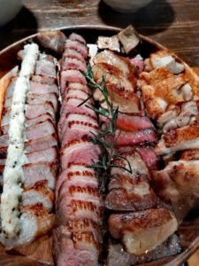 左から豚・鴨・牛フォワグラのせ・鶏。
